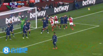 第54分钟,赖斯开出角球,前点廷伯头球一蹭!球进了!阿森纳主场1-0当先曼联↓