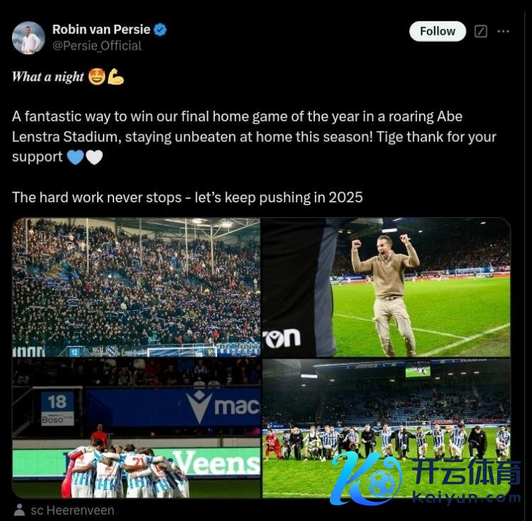 范佩西在个东说念主社媒晒照庆祝顺利,配文写说念:“何等精彩的夜晚!在山呼海啸般的阿贝-斯特拉球场以出色的相貌赢下本年临了一个主场比赛,本赛季于今仍未必保捏主场不败!感谢球迷们的撑捏!前路总会有重重艰难世界杯买球体育信息,让咱们2025年不竭加油!”