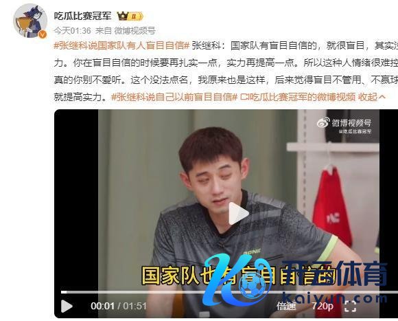 著作信源:吃瓜比赛冠军 2024年---张继科说国度队有东说念主盲目自信
