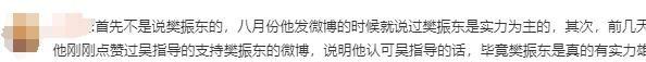 也有网友径直站出来为张继科诡辩,觉得他这番话并非针对。事实上,本年八月份,张继科曾在酬酢媒体上公开惊羡樊振东的实力。就在前几天,他还点赞了吴领导撑持樊振东的微博,标明他认同吴领导的不雅点。