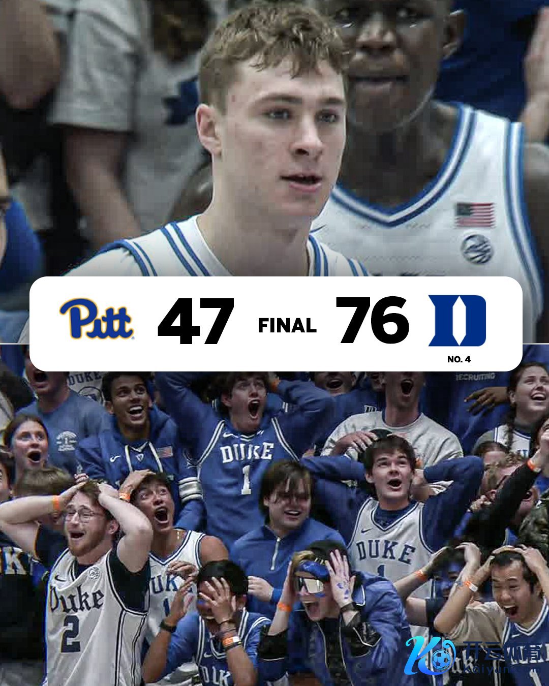 01月08日讯 NCAA男篮旧例赛,杜克大学在客场以76-47大捷匹兹堡大学,喜提九连胜。