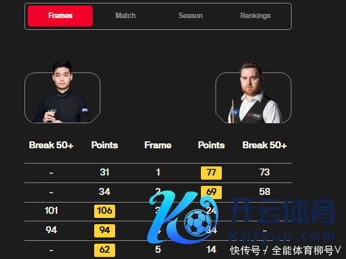 第二局,斯佳辉轰出单杆破百(104分),104-0零封韦克林,1-1扳平比分。第三局,两东谈成见开拉锯战,胶著的比赛中,韦克林通过零敲碎打,62-54八分险胜,2-1再次跨越并赢得赛点。
