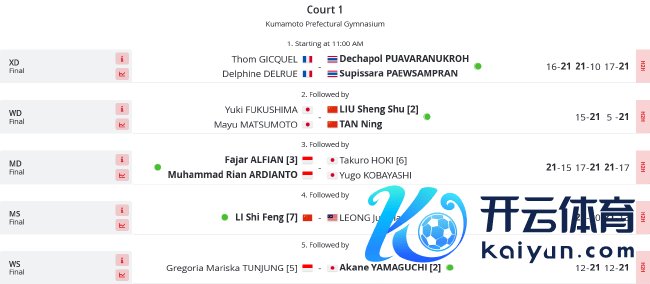 此外,在起首进行的混双决赛中,泰国组合德差波/苏皮萨拉耗时1小时02分钟,打满三局,以2-1(21-16/10-21/21-17)降服法国组合吉凯尔/德尔吕,告捷夺冠。