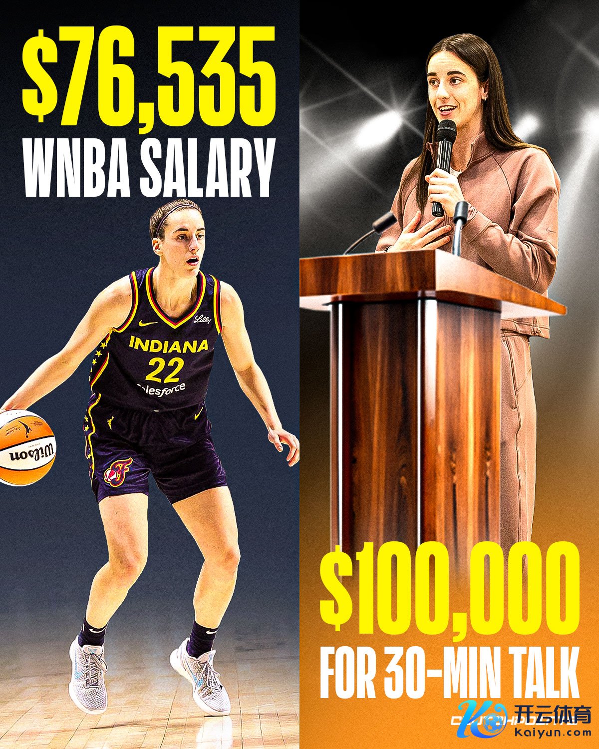 12月1日讯 据好意思媒报谈,WNBA当红球星凯特琳-克拉克一次30分钟演讲报价为10万好意思元,逾越了她在WNBA一年的薪水。