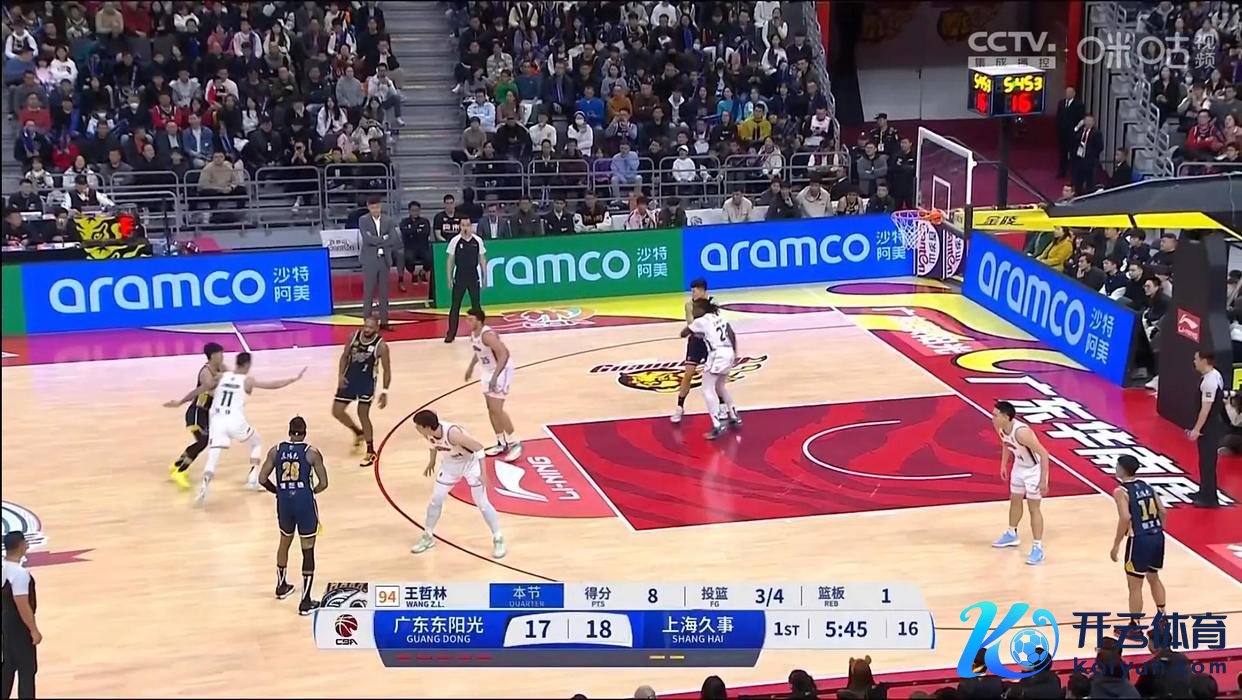 12月14日,CBA成例赛第17轮,广东队在主场对阵上海队。第一节比赛适度后,广东队过期上海队。